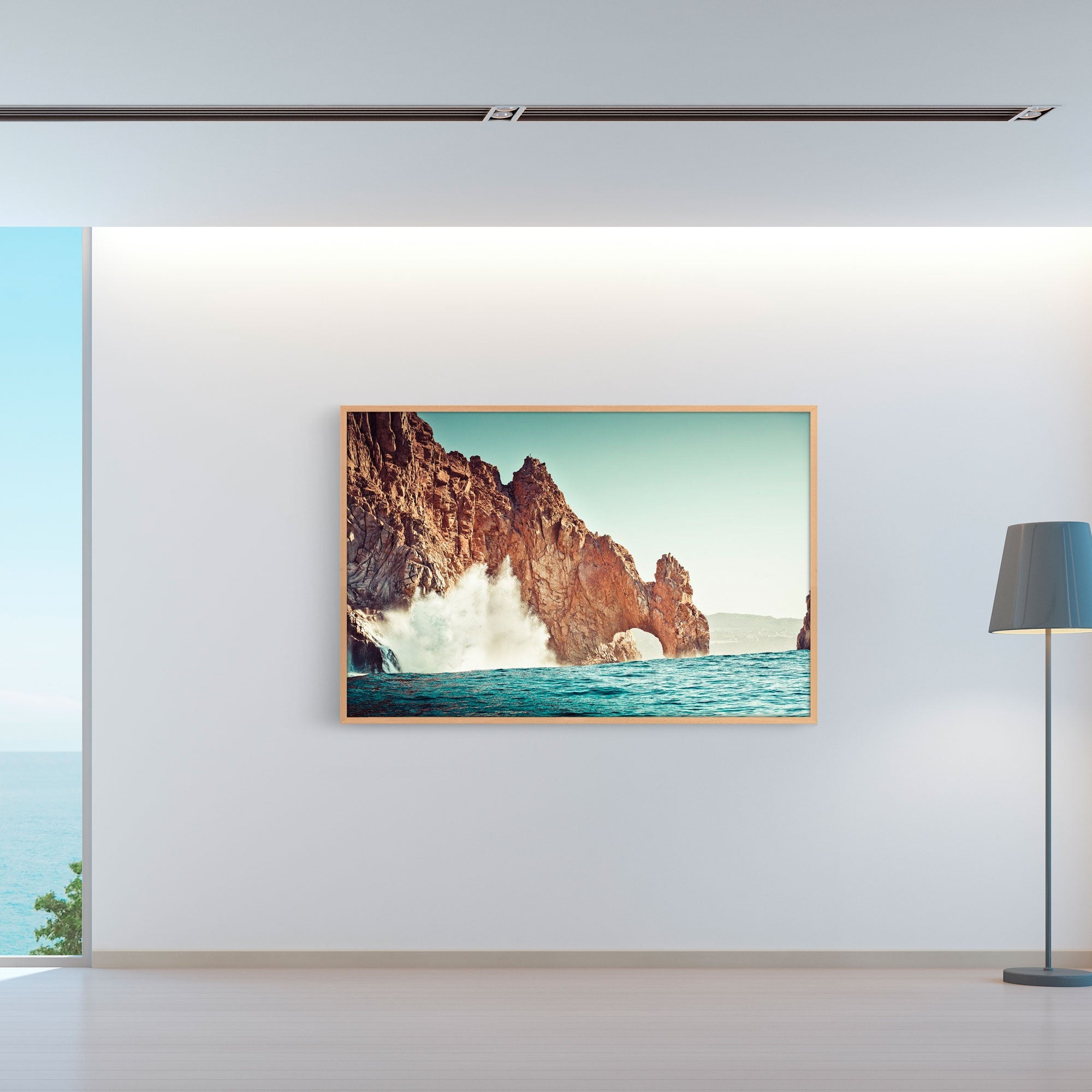 En primer plano, el Arco se eleva imponente sobre las aguas cristalinas, con los profundos tonos azules y turquesas del Océano Pacífico mezclándose con la tierra roja del promontorio, creando una fascinante paleta de colores que deleita la vista. El Arco es una formación rocosa natural que emerge del mar, creando un arco natural espectacular. Se trata de un fascinante acantilado que separa las aguas del Golfo de California de las del Océano Pacífico.